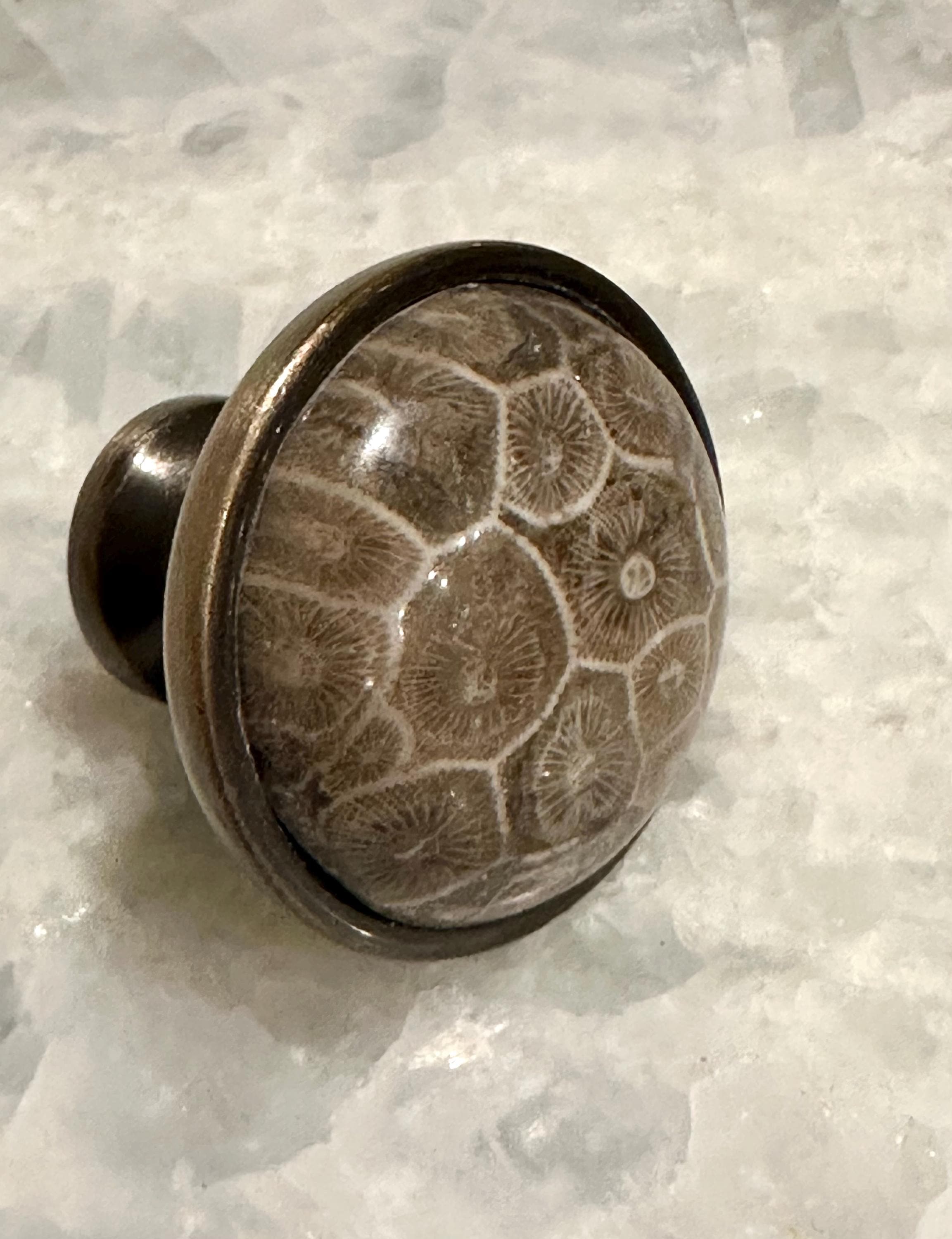 Bring the timeless beauty of the ocean indoors with our Coral Fossil Knob, a sophisticated fusion of natural fossilized coral and premium solid brass. This unique cabinet knob captures the organic texture and subtle earthy tones of ancient coral fossils, delivering an effortless coastal glam vibe that elevates any beach house, seaside retreat, or modern nautical interior. Perfect as a thoughtful beach house gift, coastal decor accent, or statement hardware piece, it adds refined ocean-inspired luxury to kitchen cabinets, bathroom vanities, dresser drawers, closet doors, or furniture upgrades