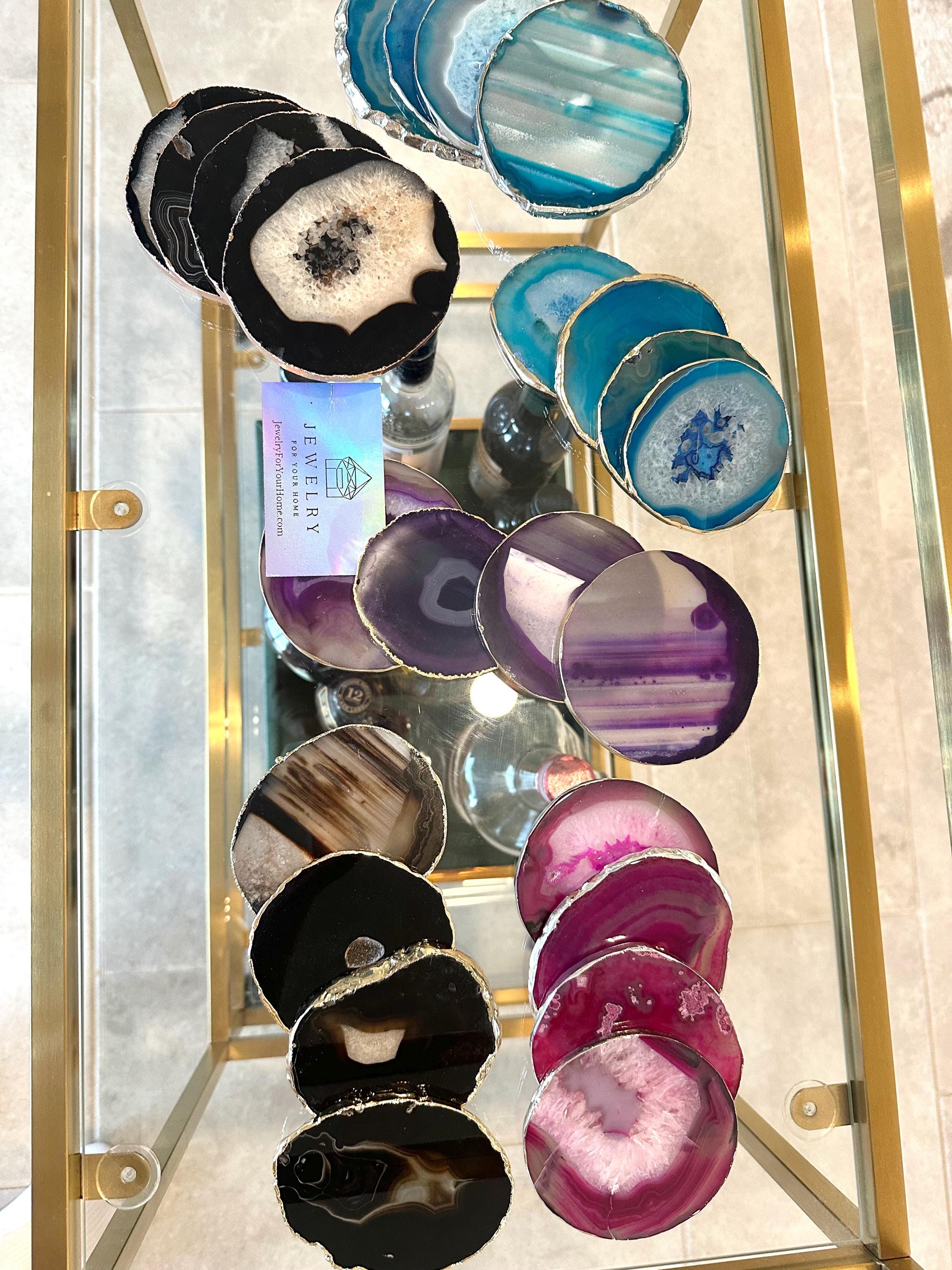 Elevate your entertaining with these stunning black agate slice coasters, where raw beauty meets refined sophistication.