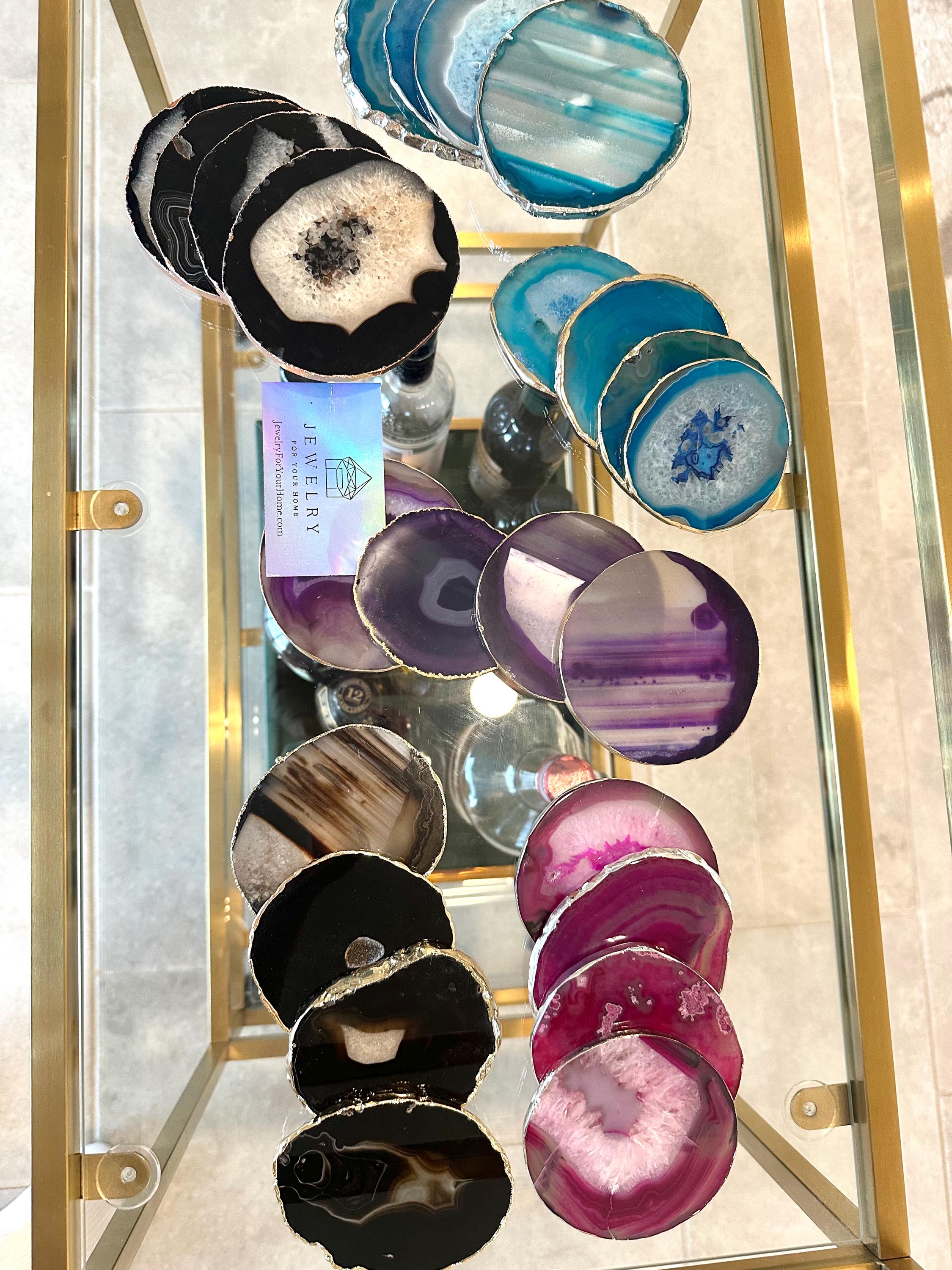 Drink Coasters Agate Drink Coaster Set of 4 Purple Home Decor Housewarming Gift for Couple Present for New Home Table Ware Coffee Coasters
