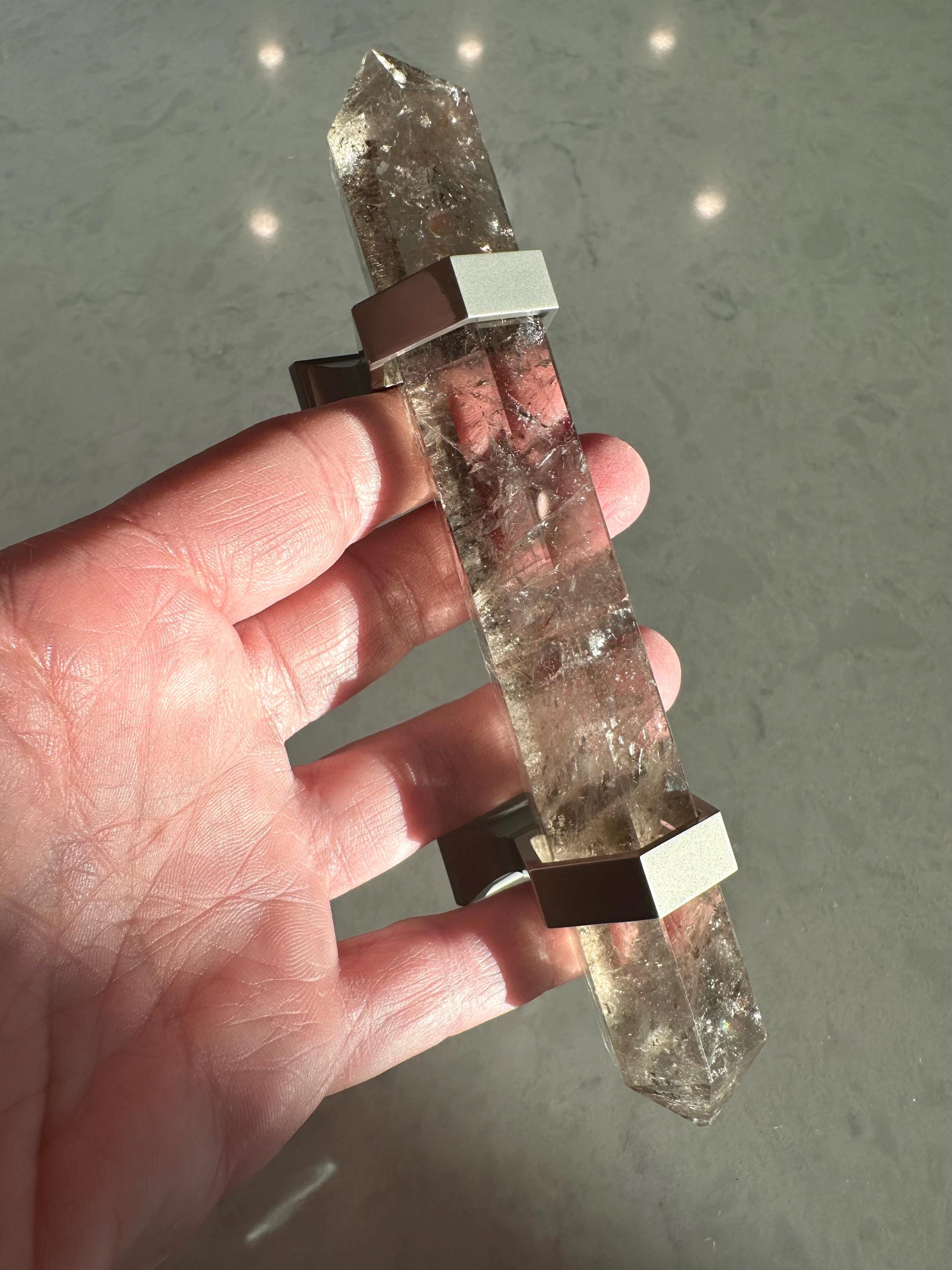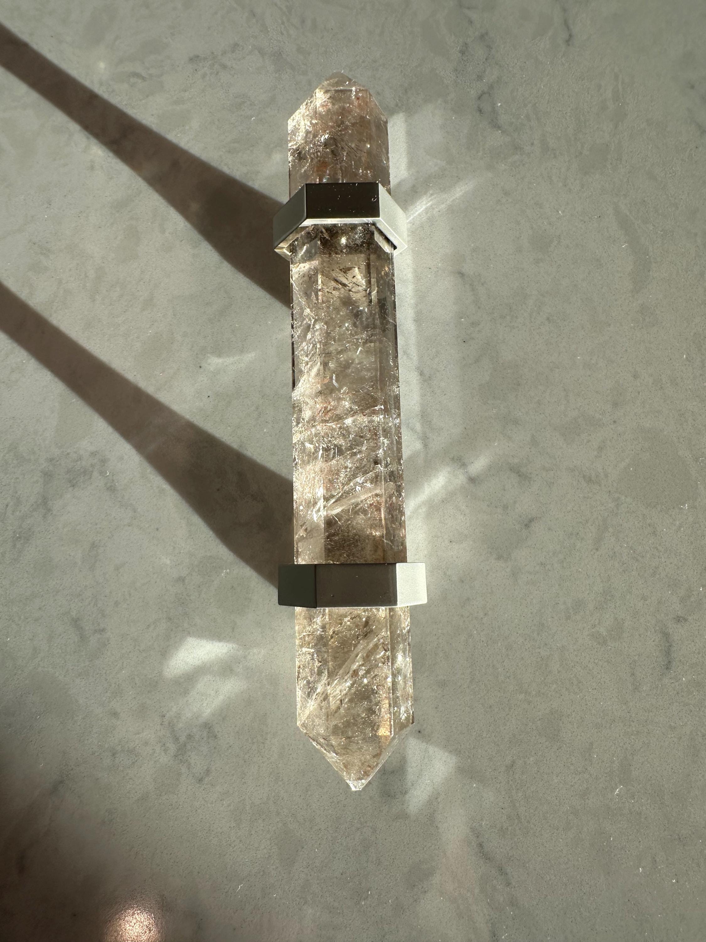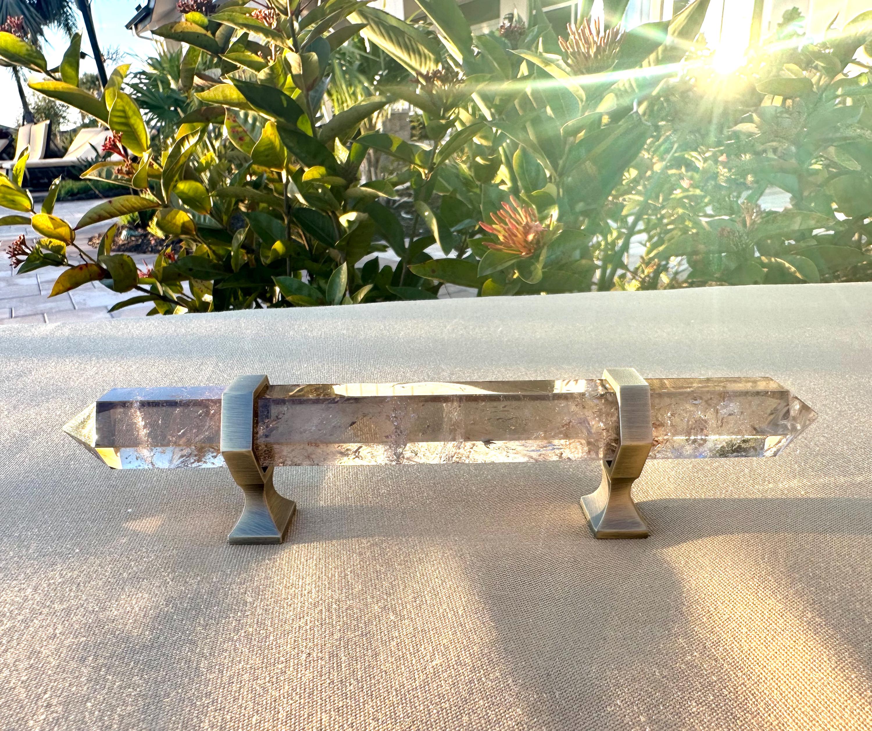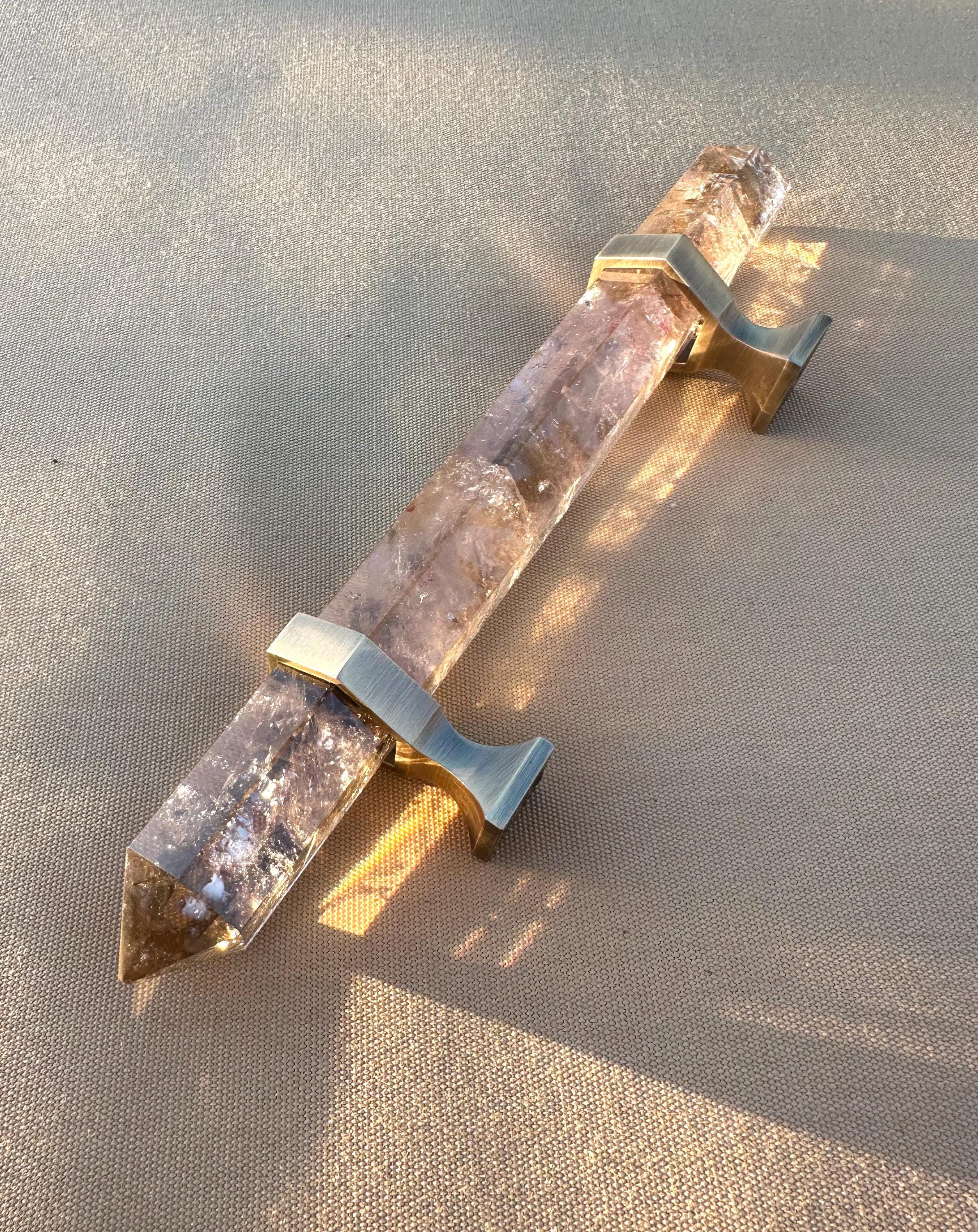 Smoky quartz is traditionally associated with grounding, protection, stress relief and transmuting negative energy into calm stability making it an ideal energetic choice for high-traffic or high-stress areas of the home while delivering one of the most versatile “neutral-with-personality” looks in luxury hardware
