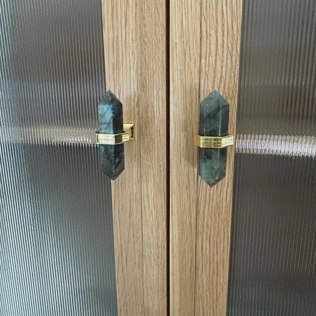 Our new collection of small crystal knobs feature expertly-cut genuine stones wrapped like a glove in solid brass hexagons. These 3" crystal drawer handles come in amethyst, rose quartz, clear quartz, labradorite, obsidian, lapis and green fluorite. The perfect hardware for dressers, vanities, desks and cabinets.