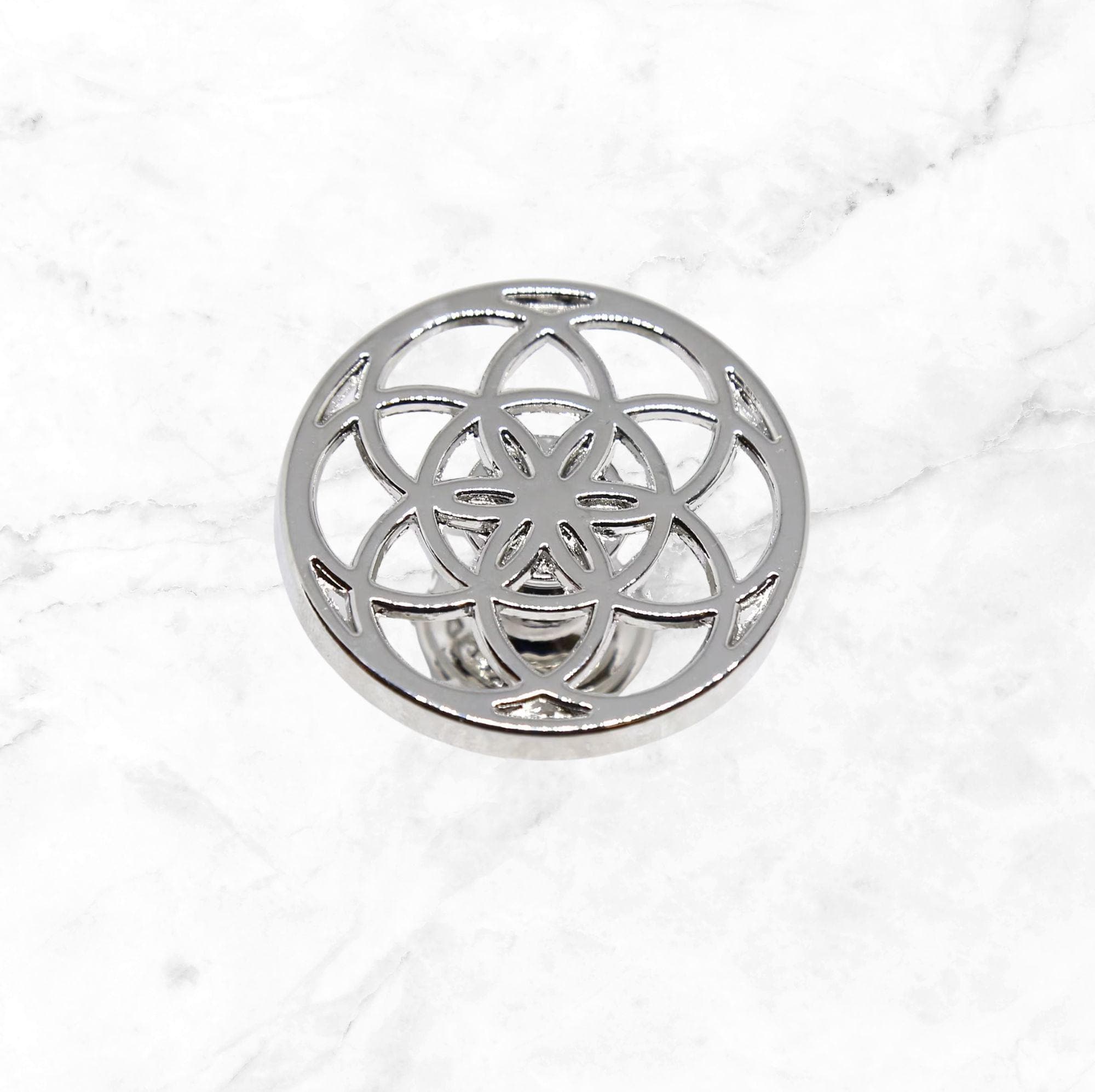The Seed of Life, with its 7 interlocking circles representing the 7 days of creation, is a universal symbol of creation and fertility. The 7 circles also represent the 7 chakras, the 7 colors of the rainbow and musical scales. Our light and airy, see-through seed of life knob is a meaningful part of our unique sacred geometry collection. 1.5" d